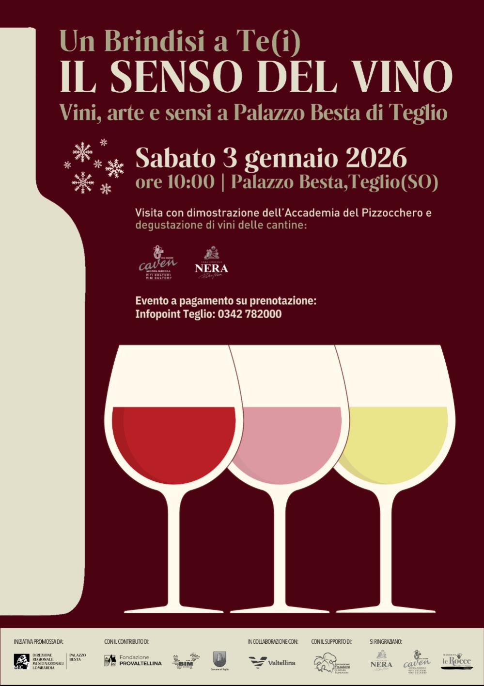 Sabato 3 gennaio 2026 a Palazzo Besta di Teglio torna “Un Brindisi a Te(i). Olympic Winter Edition”: conferenza, visita guidata e degustazione tra vino, arte e tradizione valtellinese.