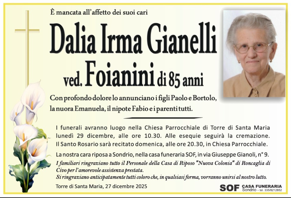 Necrologio | Dalia Irma Gianelli ved. Foianini | SOFT