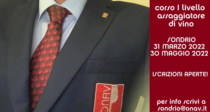 ONAV - Organizzazione Nazionale Assaggiatori Vino - sezione di Sondrio comunica l'apertura delle iscrizioni al 19° corso di I° livello per aspiranti assaggiatori di vino 2022.