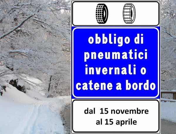 La normativa disciplinata dall'articolo 6 del Codice della Strada introdotto dalla legge n.120 del 29 luglio 2010, stabilisce che dal 15 novembre fino al 15 aprile vige l'obbligo di obbligo di essere "muniti ovvero di avere a bordo mezzi antisdrucciolevoli o pneumatici invernali idonei alla marcia su neve o su ghiaccio".