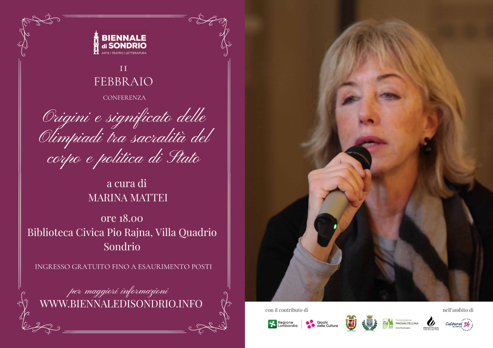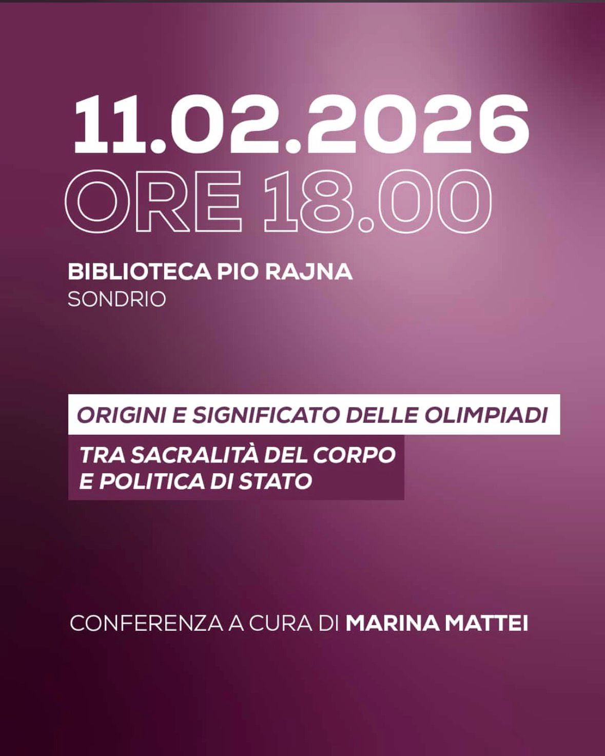 February 11 Origins and meaning of the Olympics between the sacredness of the body and State politics at Biblioteca Civica Pio Rajna - Villa Quadrio