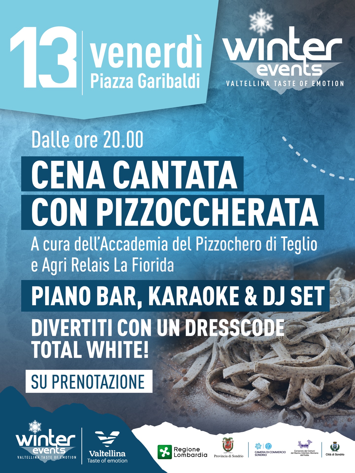 8:00 PM / Tent structure SUNG DINNER WITH PIZZOCCHERATA organized by the Accademia del Pizzocchero di Teglio and Agri Relais La Fiorida