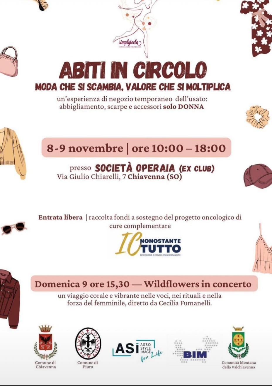 Hai mai pensato che scambiare vestiti possa diventare un gesto di valore, per te e per gli altri? A Chiavenna (SO) torna Abiti in Circolo, l’iniziativa che unisce moda, riuso consapevole e solidarietà tutta al femminile.