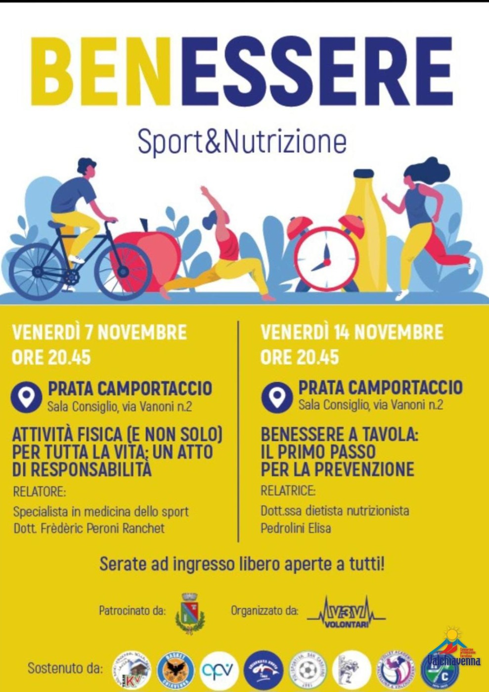 Due appuntamenti per approfondire il concetto di benessere, tra alimentazione consapevole e movimento. A Prata Camportaccio (SO), nella Sala Consiglio, torna "BenEssere – Sport & Nutrizione", una mini-rassegna dedicata alla salute e alla prevenzione, aperta a tutti e completamente gratuita.