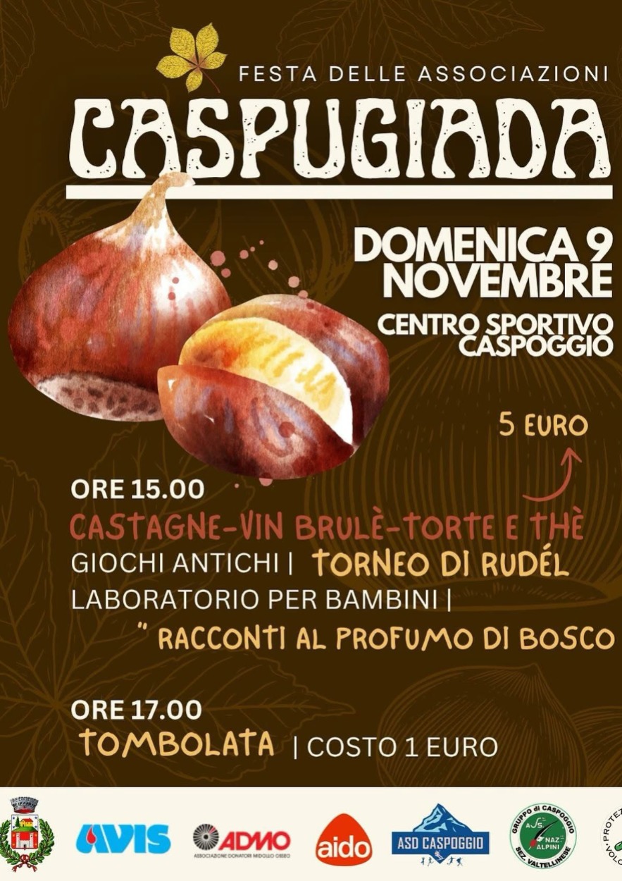 Una domenica pomeriggio da vivere all’aperto con gusto e compagnia: a Caspoggio (SO) torna la Caspugiada, la tradizionale festa delle associazioni con castagne, vin brulè, giochi, laboratori e tanto altro.