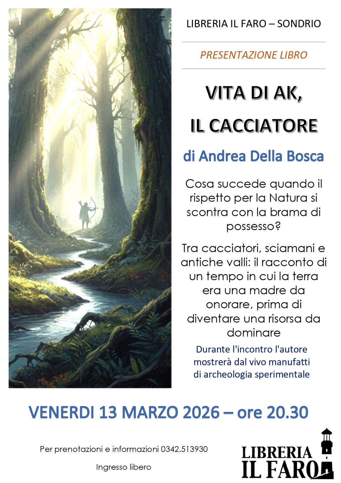 Venerdì 13 marzo 2026 alle 20.30 Andrea Della Bosca presenta il libro "Vita di Ak. Il cacciatore",