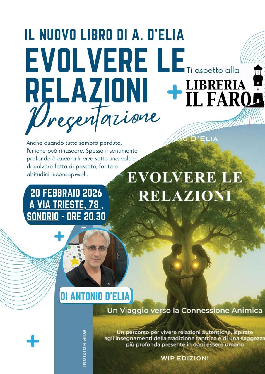 Venerdì 20 febbraio 2026 alle 20.30 Presentazione del libro di A. D'Elia "Evolvere le relazioni"