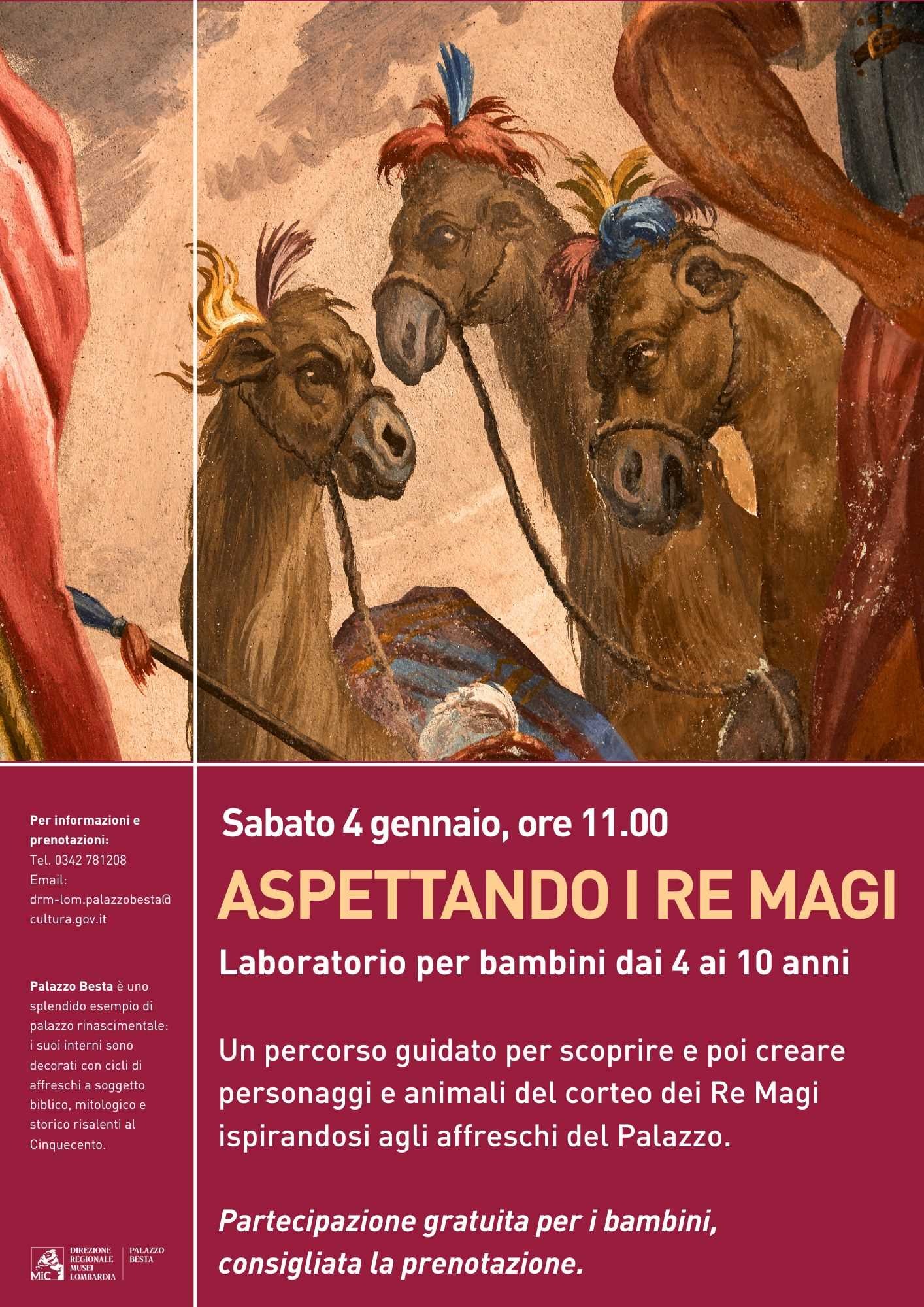 Visita guidata e laboratorio creativo per bambini dai 4 ai 10 anni, pensato per accompagnare i più piccoli nel clima dell’Epifania attraverso racconti, attività manuali e momenti di scoperta, all’interno delle suggestive sale del palazzo.
