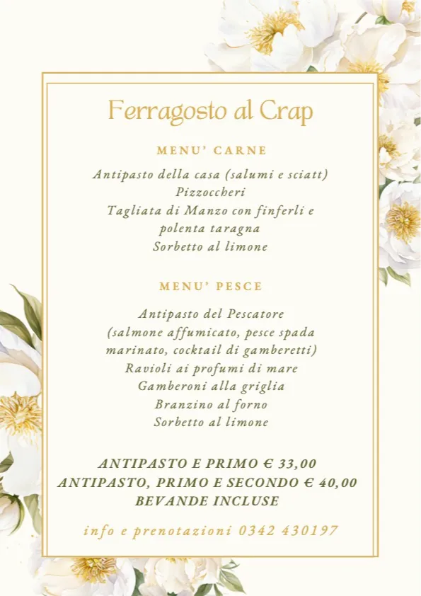 Ristorante Al Crap di Tresivio organizza Ferragosto Al Crap con due menù, carne e pesce, per deliziare tutti i palati.