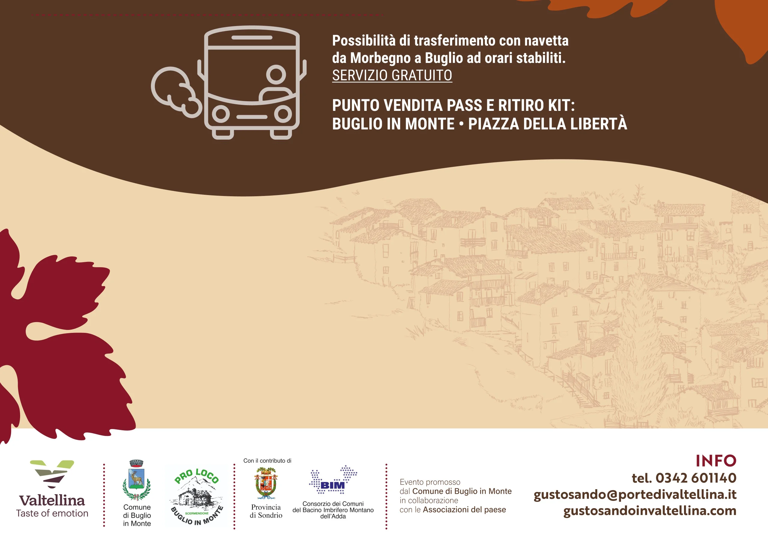 È attivo un servizio navetta gratuito con partenza da Morbegno verso Buglio, con orari stabiliti durante i due giorni di evento.
