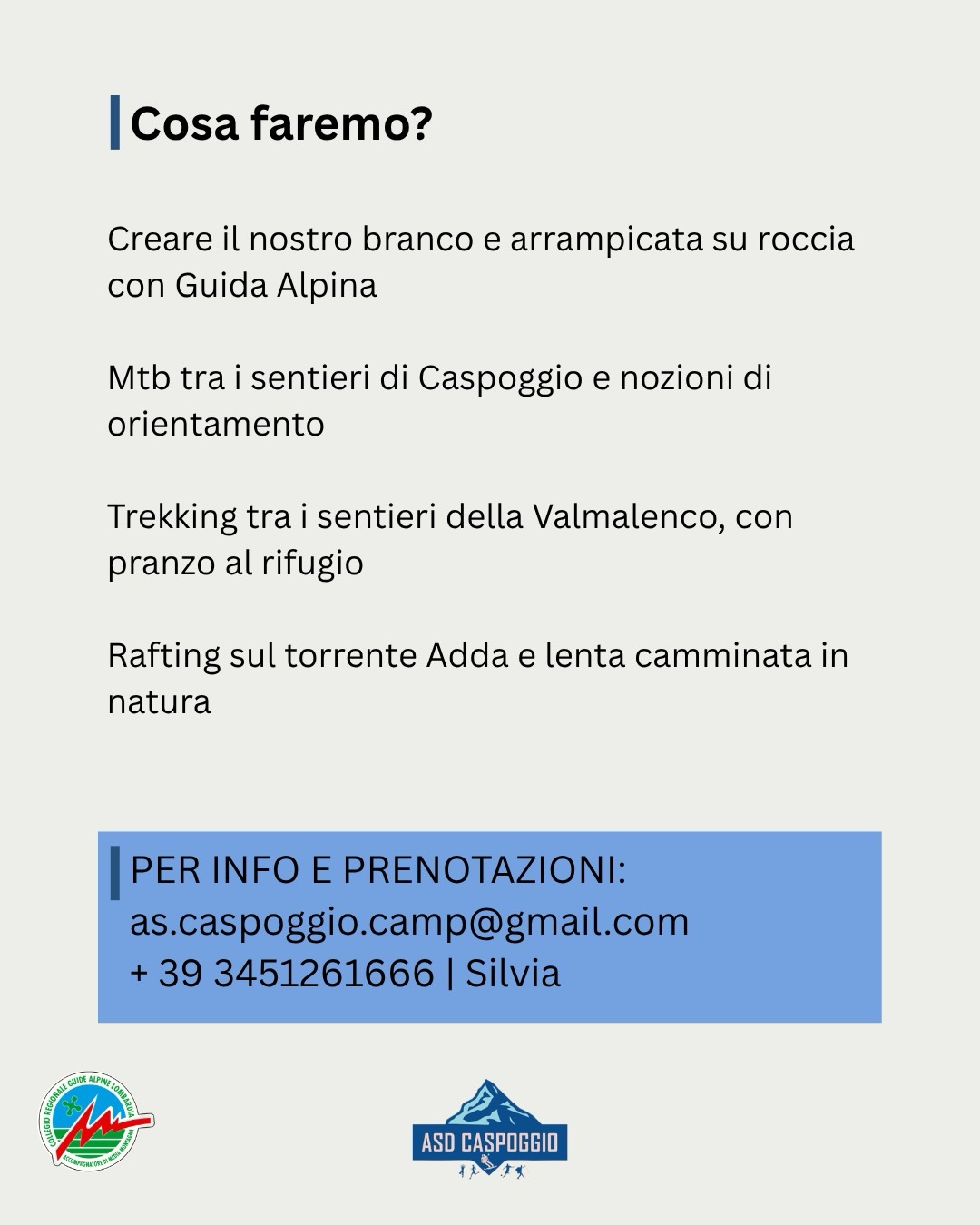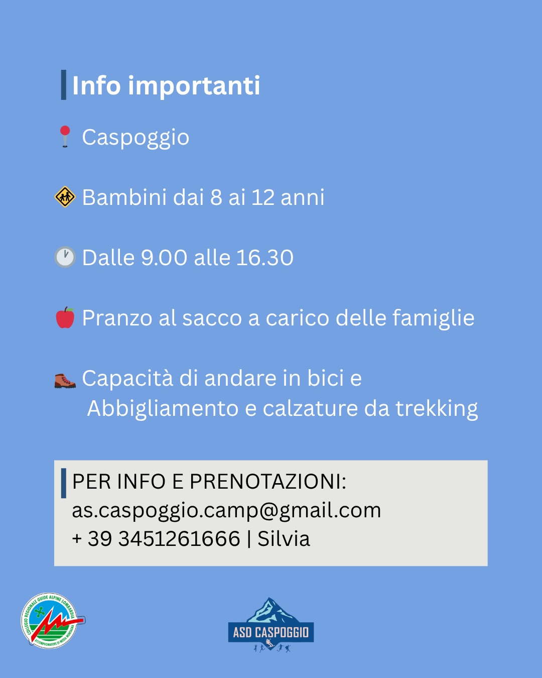 Il camp è in programma dal 17 agosto al 21 agosto ed è proposto da ASD Caspoggio.