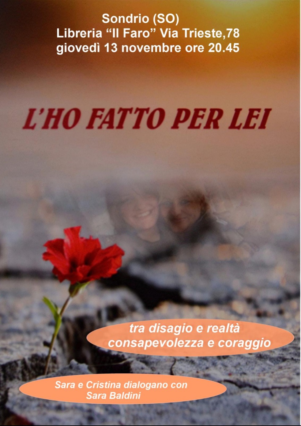 A volte basta una voce, una storia, un dialogo sincero per aprire gli occhi su ciò che spesso viene taciuto. Giovedì 13 novembre 2025, alla Libreria “Il Faro” di Sondrio (SO), si terrà un incontro intenso e autentico: "L'ho fatto per lei", un momento di riflessione e confronto che mette al centro il disagio, la realtà, la consapevolezza e il coraggio 🌺