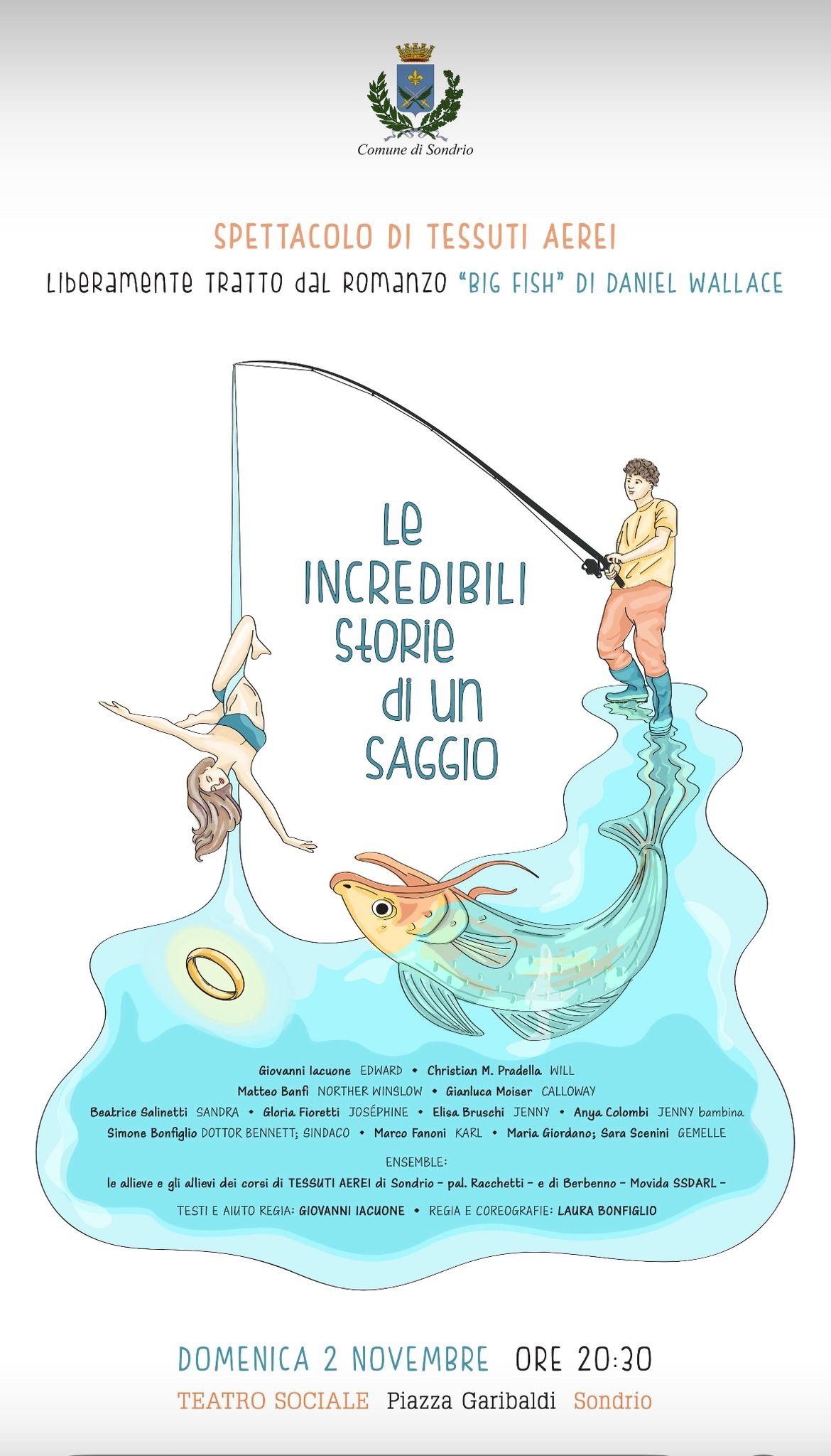 Sul palco, le atlete dai 7 ai 55 anni si muovono tra i tessuti con coreografie aeree spettacolari, mentre 5 attori professionisti accompagnano il pubblico nei mondi incredibili di Edward Bloom, personaggio tratto dal celebre romanzo "Big Fish". Una favola moderna, intensa, che tocca temi universali con delicatezza e poesia.