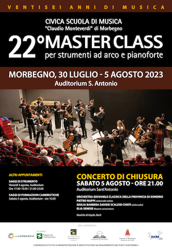 Civica scuola di musica Claudio Monteverdi di Morbegno organizza Masterclass per strumenti ad arco e pianoforte 2023, 30 luglio - 5 agosto