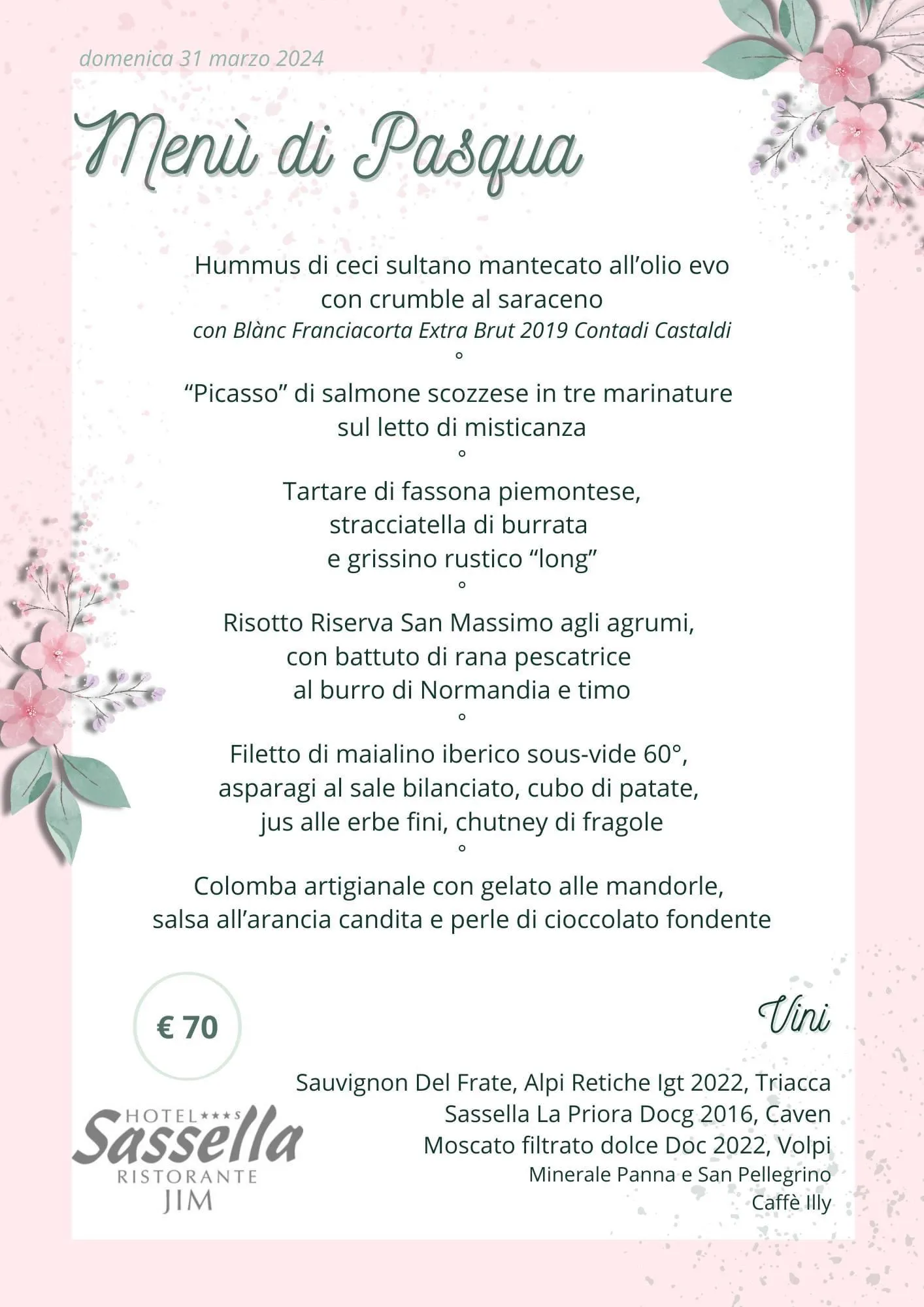 Hotel Sassella RIstorante Jim ti stupirà con il suo fantastico Menù di Pasqua.