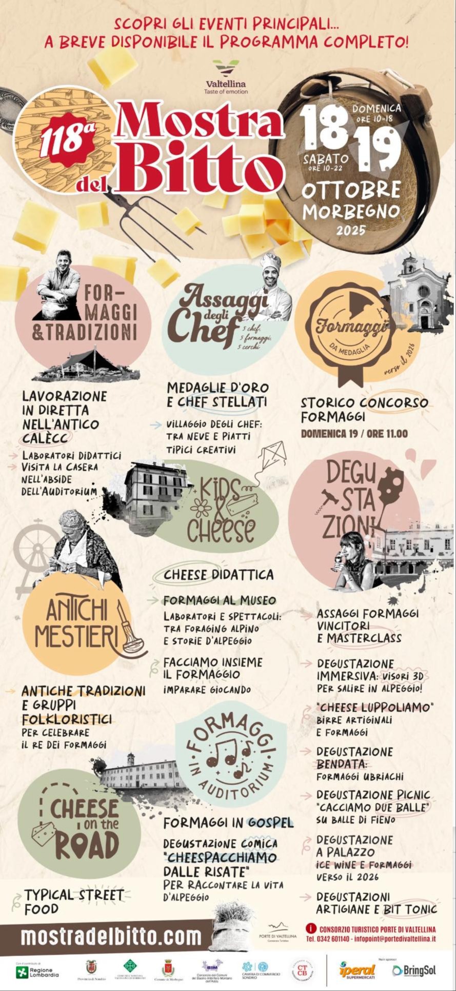 Perfetto 🙌 Ho unito tutte le parti che hai dettato finora in un unico programma ordinato, completo e strutturato come un vero e proprio programma ufficiale della 118ª Mostra del Bitto.