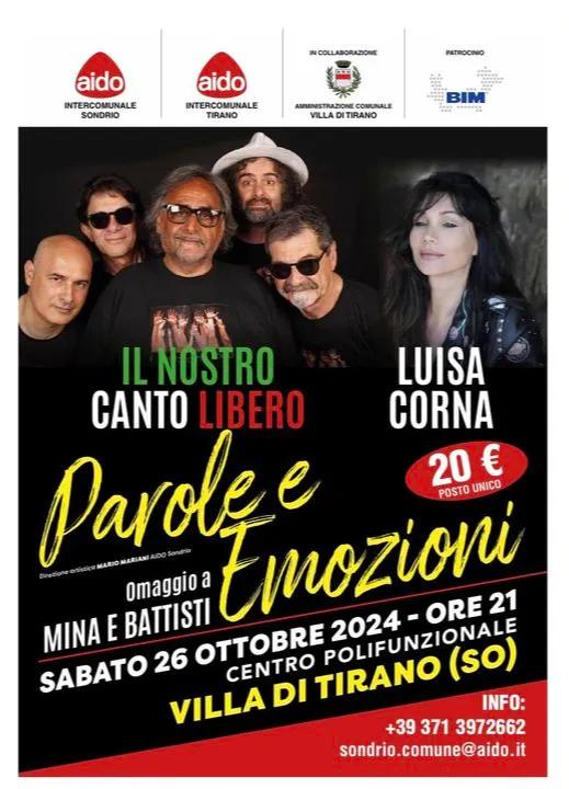 Sabato 26 ottobre alle ore 20.30, presso il Polifunzionale di Villa di TIrano, Parole e emozioni.