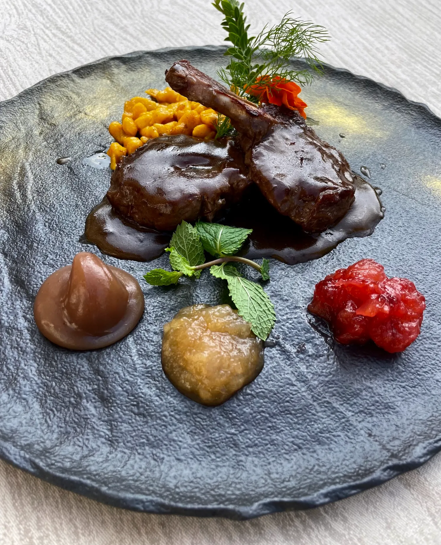 Costoletta di cervo cbt riduzione di Sforzato, spaetzli alla zucca zerbinati confetture alla mela, pera e castagna €30