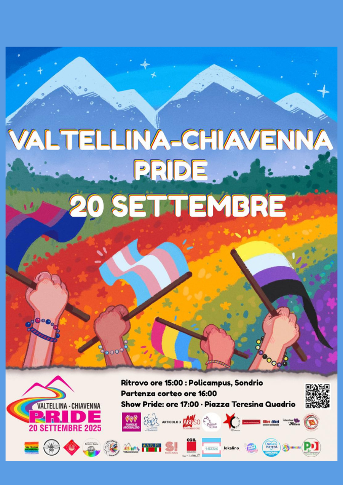 Un corteo di colori, musica e diritti torna a riempire le strade della Valtellina. Sabato 20 settembre 2025 è il giorno del Valtellina-Chiavenna Pride, una manifestazione che vuole celebrare la libertà, l’uguaglianza e l’inclusione 🌈.