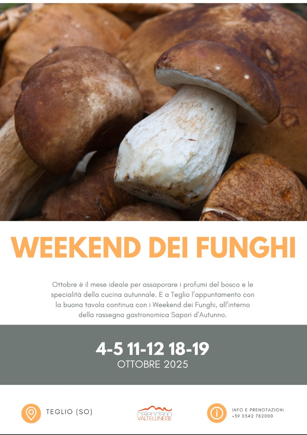 E a Teglio l’appuntamento con la buona tavola continua con i Weekend dei Funghi, all’interno della rassegna gastronomica Sapori d’Autunno.