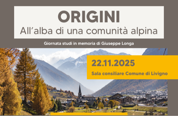 Sabato 22 novembre a Livigno si tiene il convegno “Origini”, una giornata di studi in memoria di Giuseppe Longa per approfondire la storia e l’identità della comunità alpina. Ingresso gratuito con prenotazione.