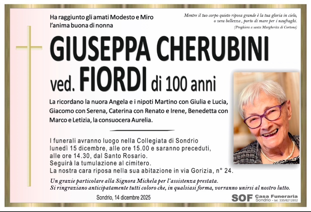 Necrologio | Giuseppa Cherubini ved. Fiordi | SOF