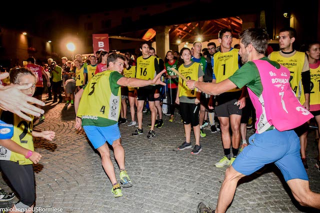 I 12 staffettisti di ogni squadra si sono alternati nel passaggio del testimone, atleti di un certo prestigio (tra cui i giovani nazionali Luca Cantoni, Nicolò Canclini, Giulia Murada), ma anche qualcuno decisamente insolito nel ruolo: avete mai visto dei podisti gareggiare in completo da matrimonio?