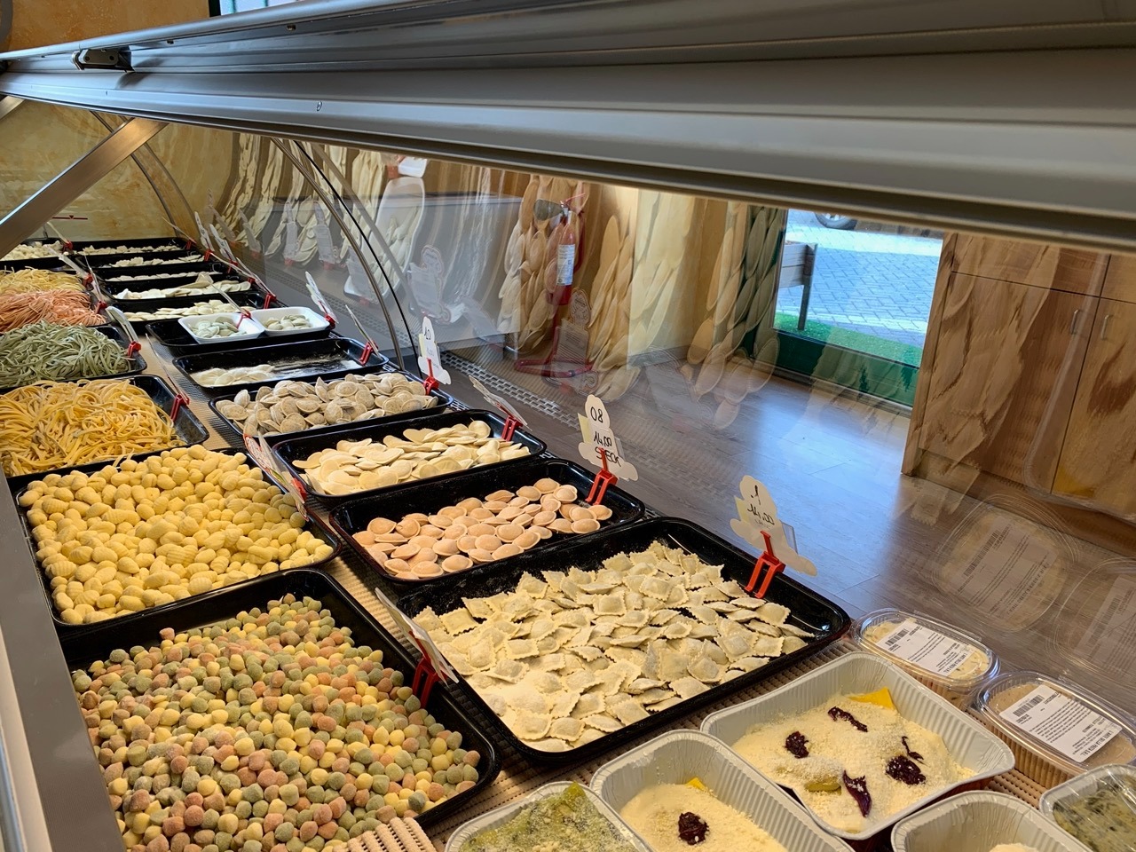 Ogni giorno il pastificio artigianale, produce ravioli, tagliatelle, pizzoccheri, gnocchi, piatti pronti, gastronomia e li distribuisce nei vari punti vendita che alla sera vedono quasi sempre il tutto esaurito.