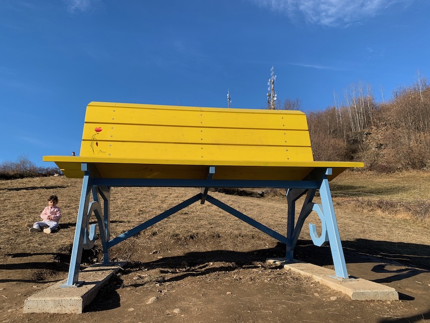 Incuriosita da questa attrazione, ero andata a cercare una delle tante panchine giganti, le famose Big Bench e ne ho trovata una a Ceva nelle Langhe in provincia di Cuneo.