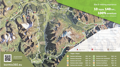 É un percorso ad anello per mountain bike, e-bike ed escursionisti che compie un giro di 140 km sulle montagne del comprensorio di Bormio. Più della distanza da Bormio a Lecco! La sua particolarità? Rimane sempre in quota tra gli 800 e i 2300 metri di altezza.