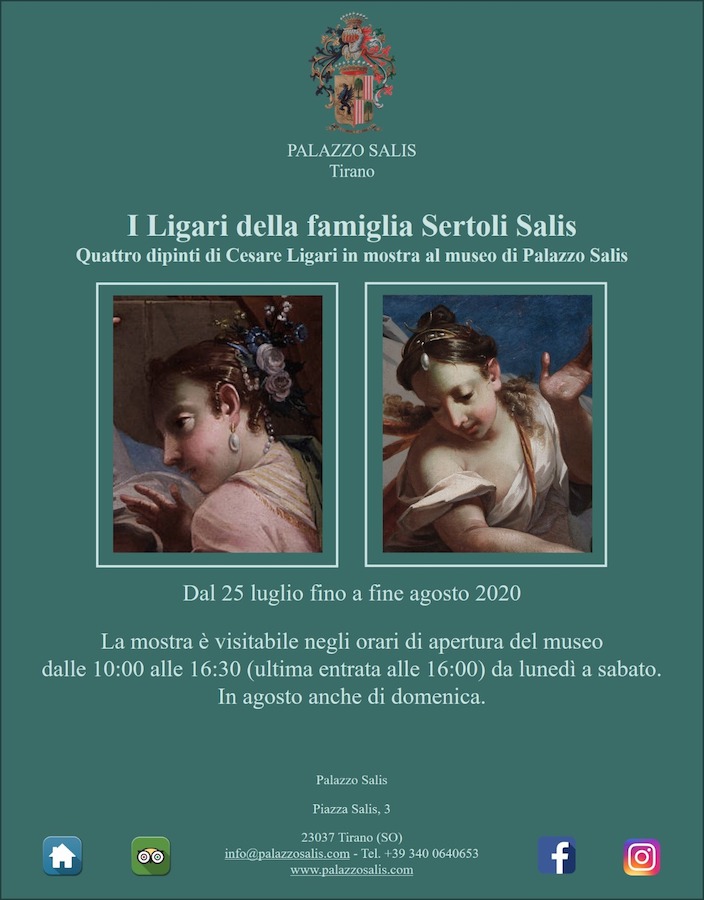 Le quattro opere di Cesare Ligari (1716-1770), eccezionalmente inserite nel circuito di visita del museo di Palazzo Salis fino a fine mese, sono state dipinte per il conte Carlo Salis tra il 1752 e il 1755. Precedentemente erano state esposte nel 2008 a Milano, al Palazzo delle Stelline, durante la mostra sui Ligari realizzata dalla Fondazione CreVal.