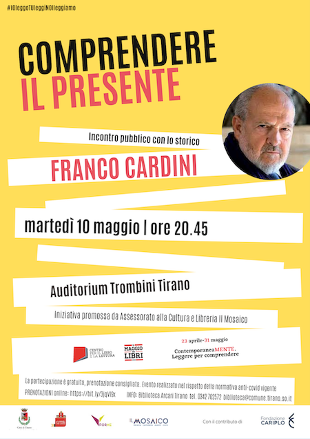 Fra i vari appuntamenti, su iniziativa congiunta della Libreria il Mosaico di Tirano e dell'Assessorato alla Cultura del Comune di Tirano, Franco Cardini sarà ospite a Tirano nei giorni 10 e 11 maggio 2022.