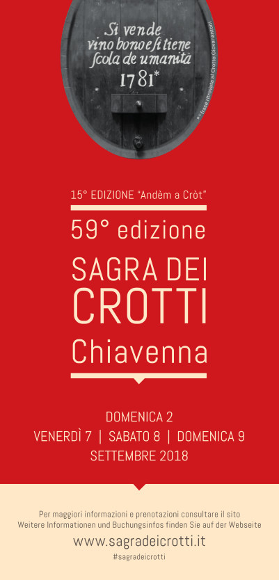A coordinare l’organizzazione e la promozione della Sagra dei crotti è il Consorzio per la promozione turistica della Valchiavenna che veicolerà l’evento in provincia e fuori utilizzando tutti gli strumenti a disposizione: carta stampata, televisioni, web e social media. «La Sagra dei crotti è l’appuntamento che più di tutti gli altri rappresenta Chiavenna, il più conosciuto e il più atteso - sottolinea il direttore Filippo Pighetti -. Il rinnovamento degli ultimi anni non ha tolto nulla allo spirito originario ma ha alzato il livello dell’offerta complessiva e ha differenziato le proposte con l’obiettivo di valorizzare al meglio le peculiarità del nostro territorio. Le novità introdotte sono state molte apprezzate e auspichiamo che lo sarà anche l’itinerario con le e-bike che ha quali destinatari privilegiati gli appassionati delle due ruote».