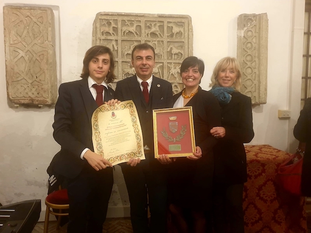 E lo ha fatto attraverso un’opera realizzata con i minerali del comprensorio della magnifica terra (ovvero diaspro, lapis e malachite), raffigurante il vessillo di Valdisotto, che è stata consegnata da Maura Gurini, in rappresentanza del Comune, nella sala del Carroccio, nel corso della premiazione.