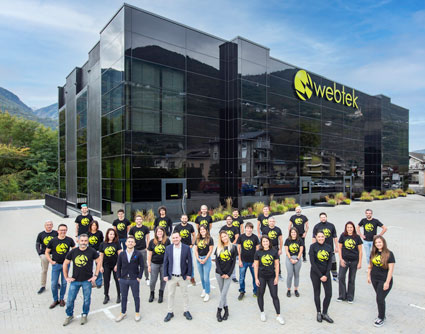 Sulla pagina di Forbes dedicata a Webtek, insieme ai testi che ben riassumono la filosofia aziendale, è eloquente la fotografia che ritrae Emanuele Piasini con i suoi collaboratori davanti alla sede di Poggiridenti con le montagne sullo sfondo.