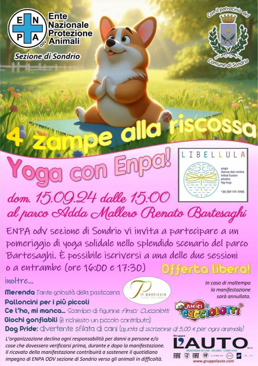 Domenica 15 settembre a Sondrio 4 zampe alla riscossa yoga con Enpa