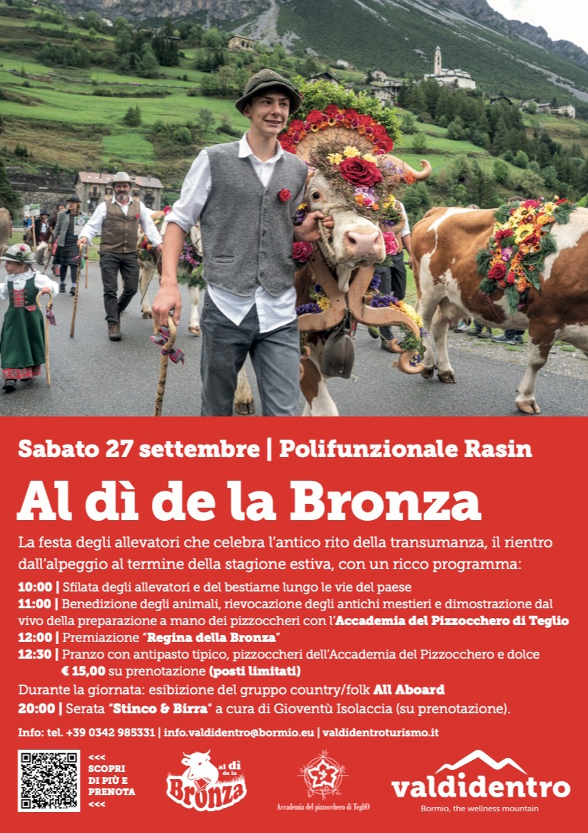 Ti sei mai chiesto com’era la vita d’alpeggio una volta? A Valdidentro (SO) puoi viverla da vicino. Torna “Al dì de la Bronza”, la tradizionale festa degli allevatori che celebra il ritorno delle mandrie dagli alpeggi e chiude simbolicamente l’estate con un’intera giornata di riti, sapori e tradizioni da non perdere.