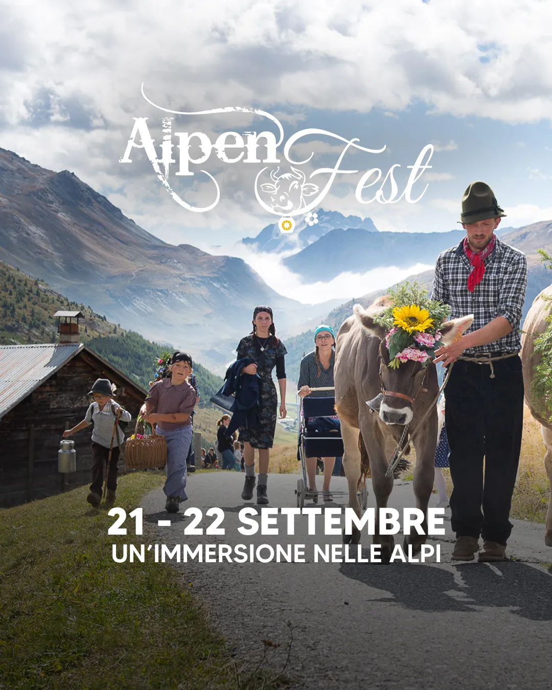 Alpen Fest è la festa della Transumanza alpina, con gli animali che, dopo l'estate in alpeggio, tornano in paese per l'inverno.