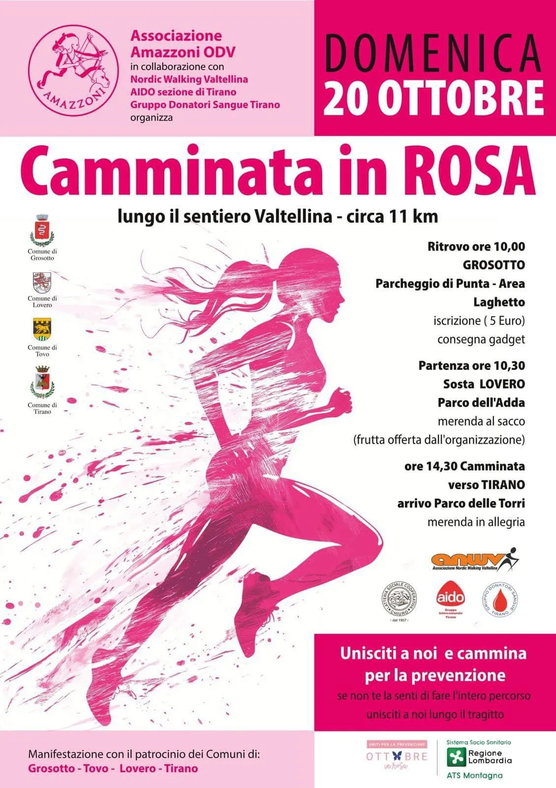 Camminata in rosa a Grosotto lungo il sentiero Valtellina domenica 20 ottobre