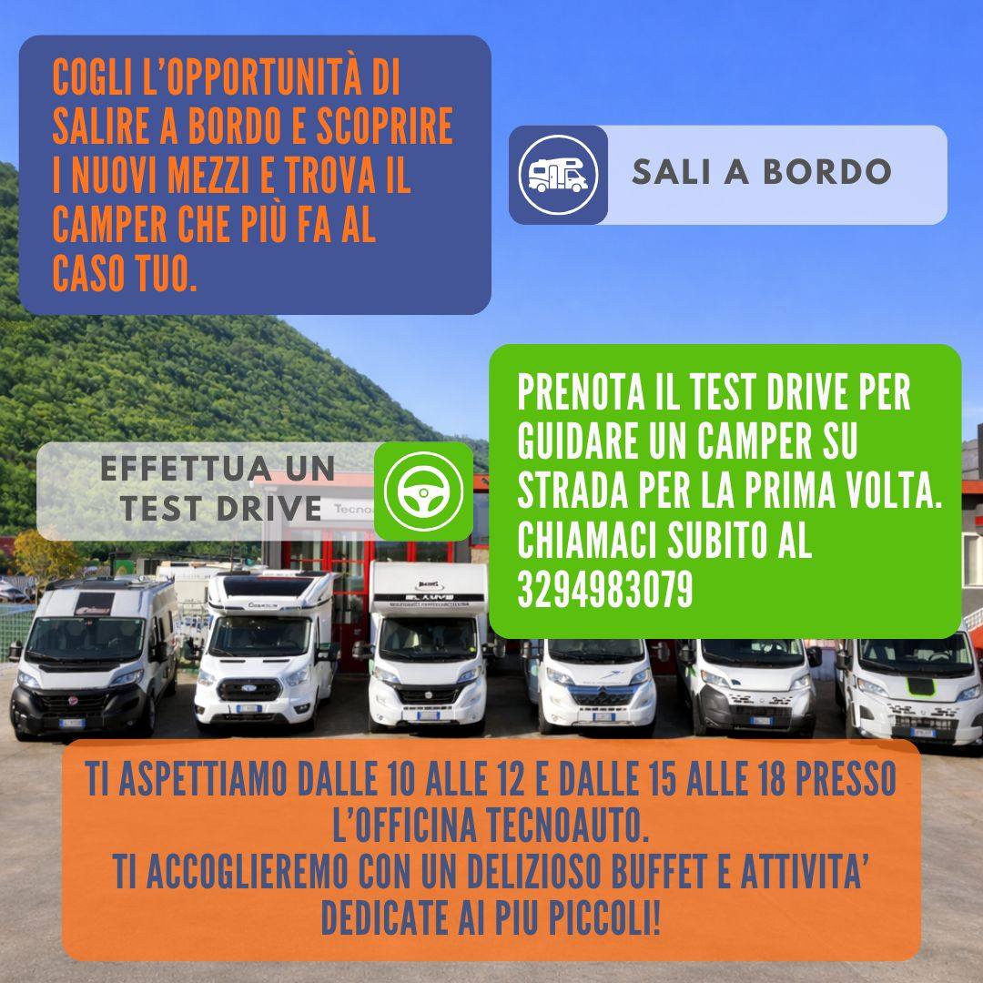 È possibile anche prenotare un test drive per provare a guidare un camper su strada (prima volta o semplicemente per fare esperienza).