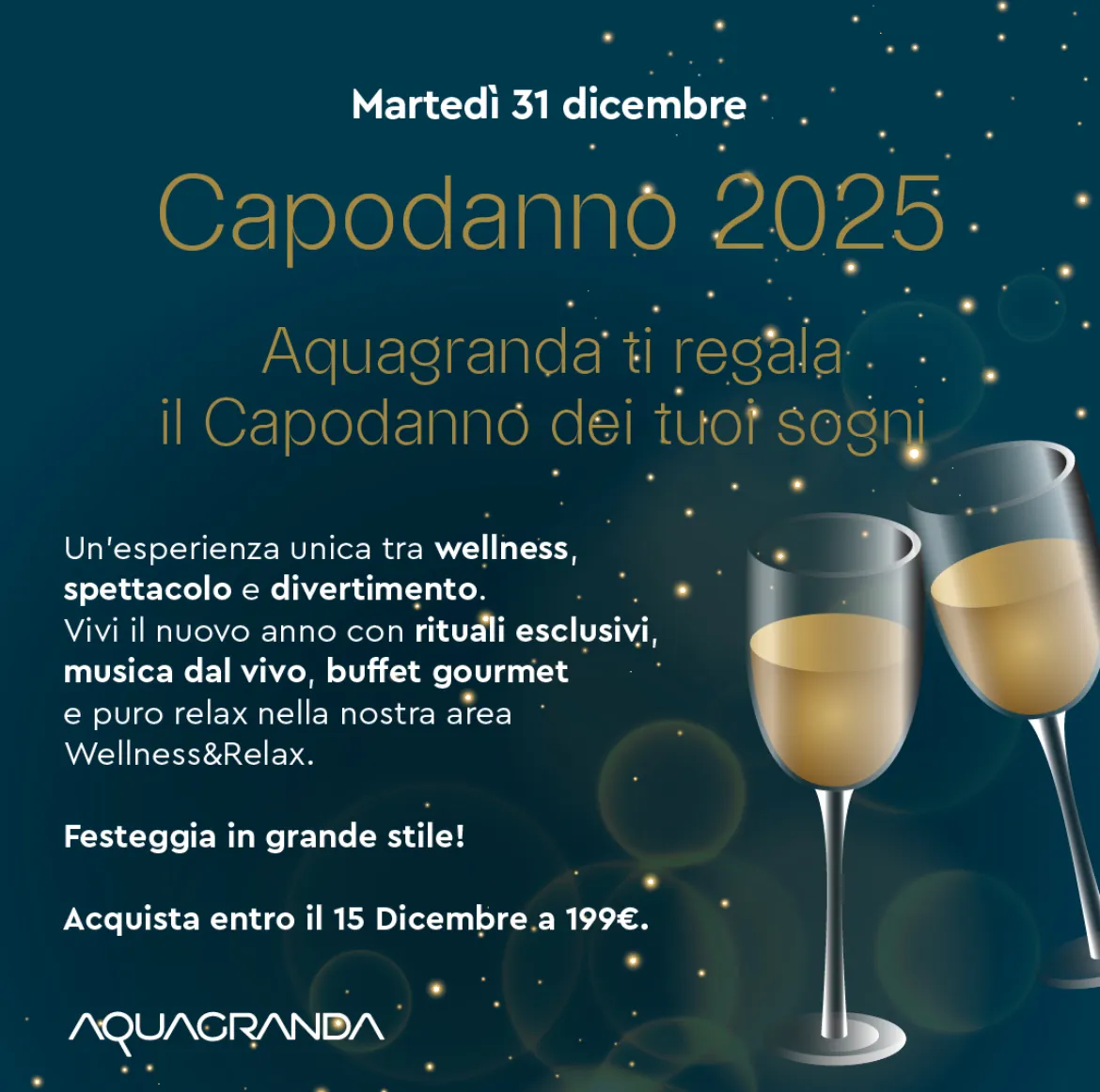 Vivi l'arrivo del nuovo anno con rituali esclusivi, musica dal vivo, buffet gourmet e puro relax nell'area Wellness&Relax.