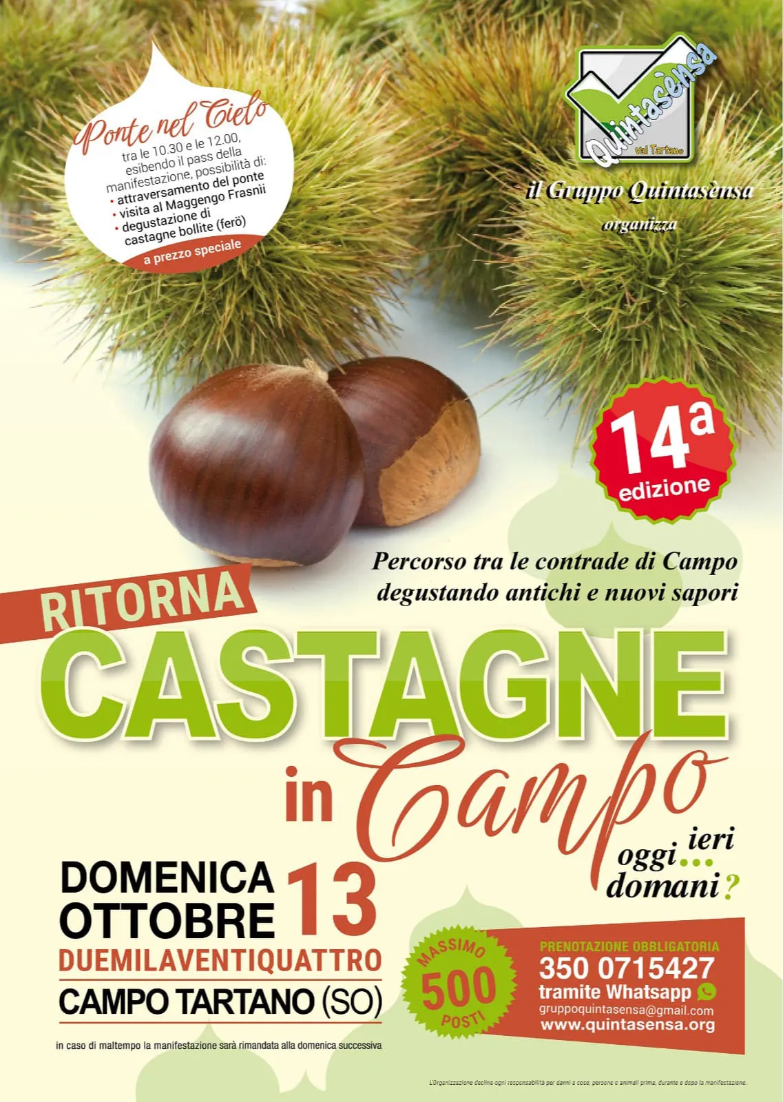 Tartano si trova in Val Tartano, sopra Talamona, ed è noto per il "Ponte nel Cielo", uno dei ponti tibetani più alti d'Europa, che collega Campo Tartano a Frasnino. Da visitare i Laghi di Porcile, raggiungibili con un'escursione ad anello, e il Museo del Legno, che racconta la vita contadina locale. È punto di partenza per trekking verso il Monte Cadelle e la Val Lunga. Ogni autunno ospita "Delizie di Polenta", rassegna gastronomica nei ristoranti della valle