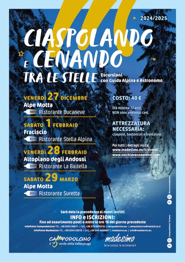 Ciaspolando e cenando 27 dicembre, 1 e 28 febbraio, 29 marzo tra Madesimo e Campododolcino