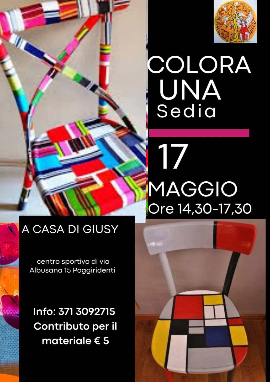 L'Associazione A Casa di Giusy organizza anche quest'anno "Colora una sedia".