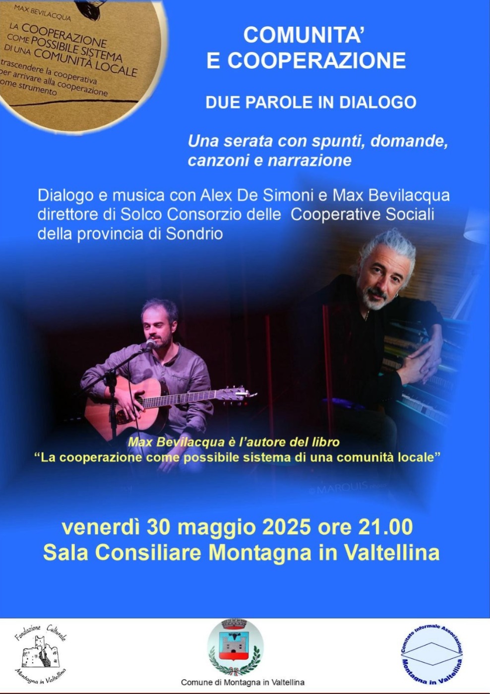 Venerdì 30 maggio 2025, alla Sala Consiliare di Montagna in Valtellina (SO) ti aspetta una serata al titolo "Comunità e Cooperazione: due parole in dialogo".