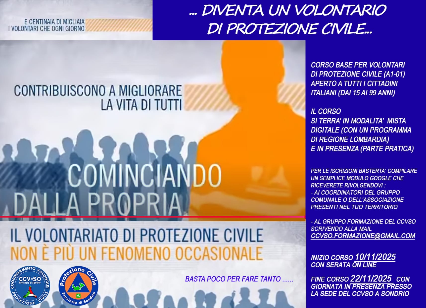 Vuoi diventare volontario di Protezione Civile? È arrivato il momento giusto per iniziare: torna anche nel 2025 il Corso di Base A1-01 per nuovi Volontari, un’opportunità concreta per entrare nel mondo della Protezione Civile e dare il tuo contributo al territorio.