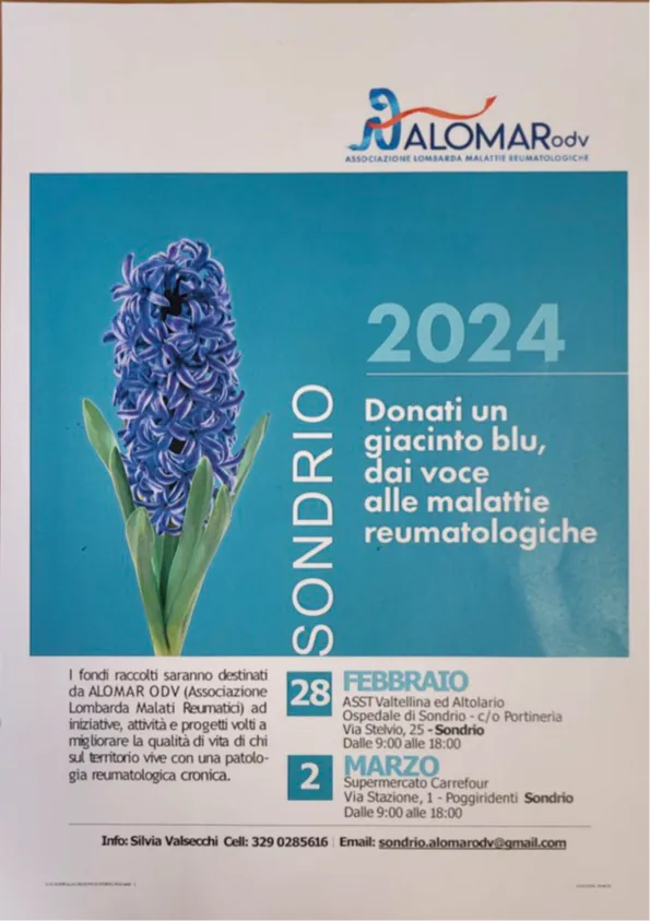 I fondi raccolti saranno destinati da ALOMAR ODV SONDRIO ( Associazione Lombarda Malati Reumatici) ad iniziative , attività e progetti volti a migliorare la qualità di vita di chi sul territorio vive con una patologia reumatologica.