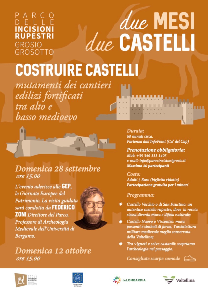 Due appuntamenti esclusivi nel Parco delle Incisioni Rupestri di Grosio (SO), tra castelli, vigneti e archeologia, accompagnati dalla voce esperta di Federico Zoni, direttore del Parco e professore di Archeologia Medievale all’Università di Bergamo.