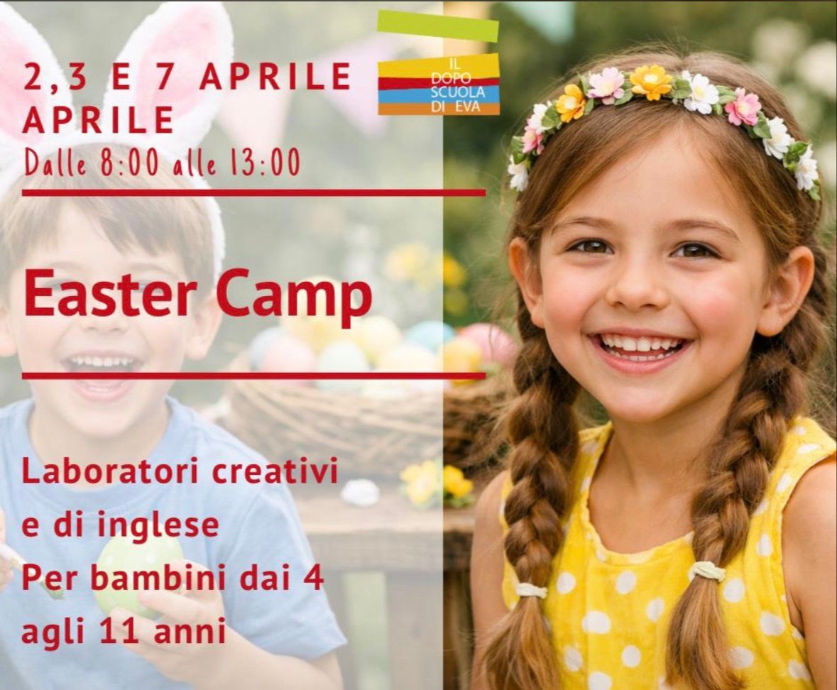 Sono aperte le iscrizioni per Easter Camp de Il doposcuola di Eva, con laboratori creativi e di inglese per bambini dai 4 agli 11 anni. Date: 2, 3 e 7 aprile, dalle 8.00 alle 13.00.