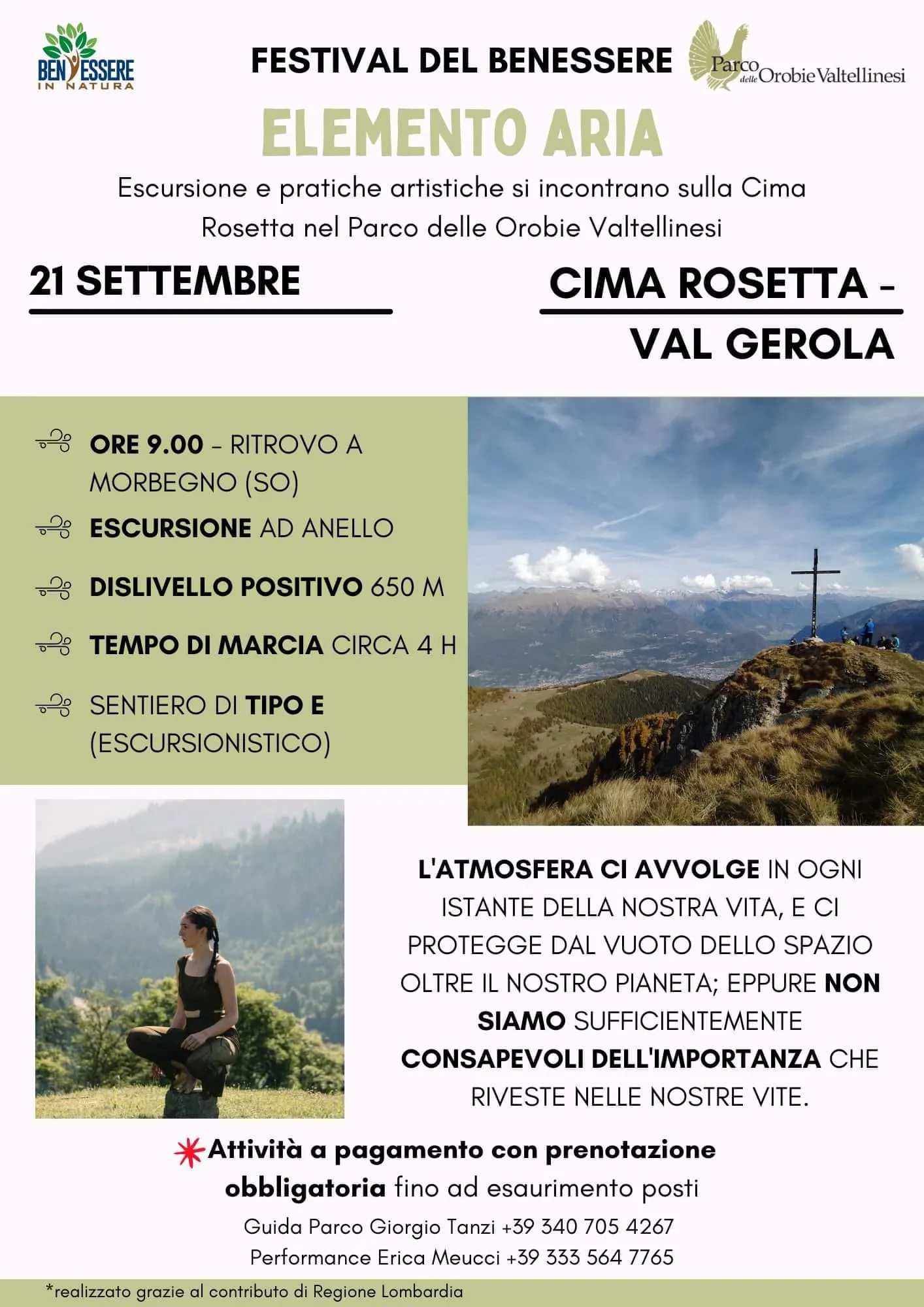 Il 21 settembre il Parco delle Orobie Valtellinesi organizza Elemento aria, escursione e pratiche artistiche si incontrano sulla Cima Rosetta nel Parco.